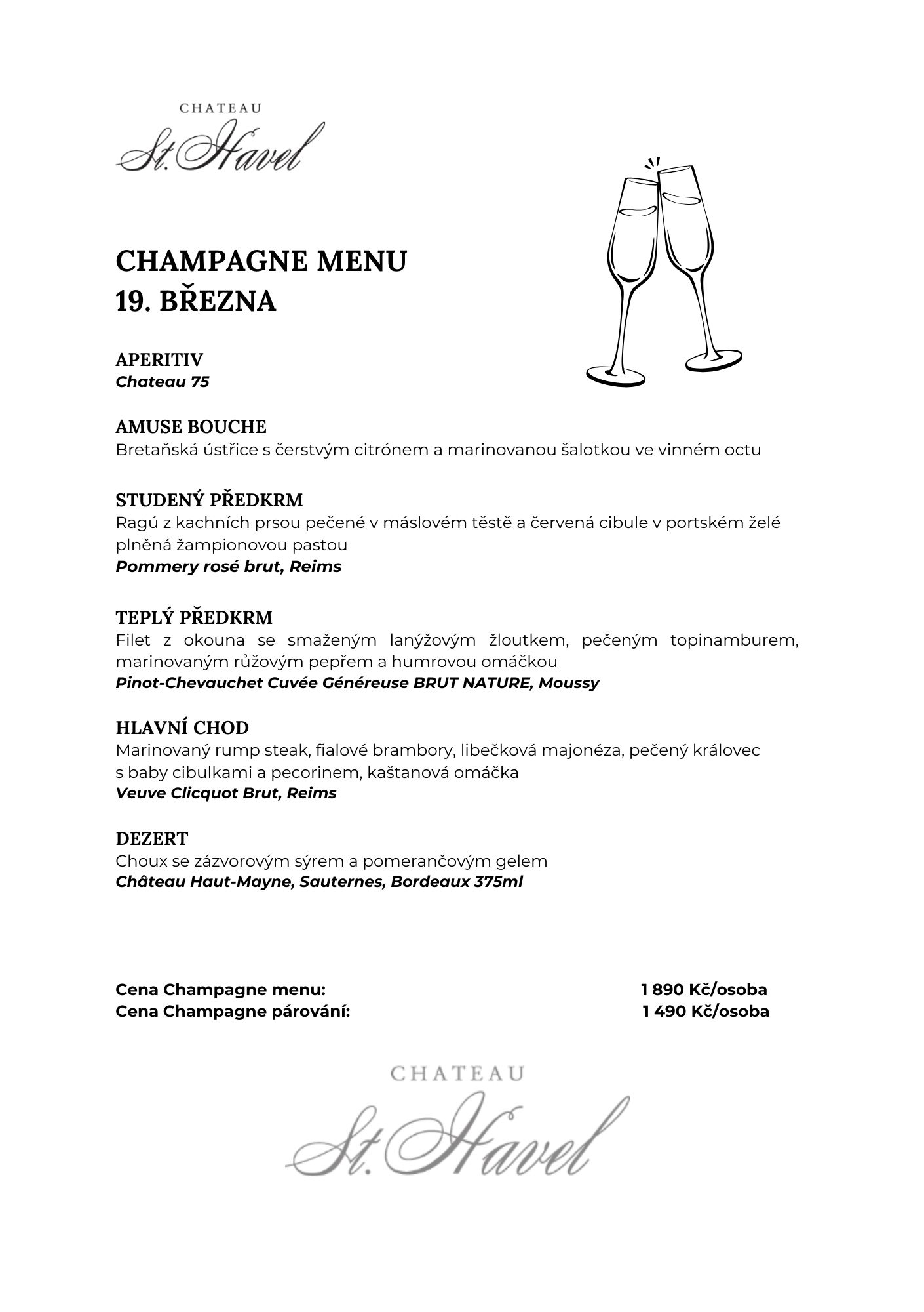 Zveme vás na exkluzivní Champagne Menu, připravené pouze pro jeden jediný večer – 19. března.